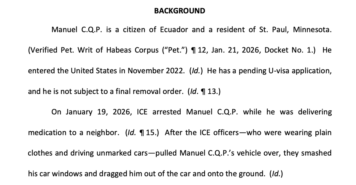 UPDATE: Yet another ruling declaring an ICE detention in Minnesota illegal, this time a man who was dragged from his car by plainclothes ICE agents last week. It lands as Juge Menendez is weighing legality of Operation Metro Surge altogether. storage.courtlistener.com/recap/gov.usco…