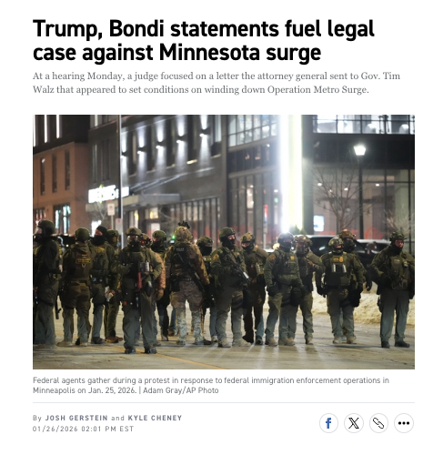 It seems clear that if Minnesota wins this fight, it will be because AG Bondi's letter explicitly linked the federal surge to the administration's desired policy goals.