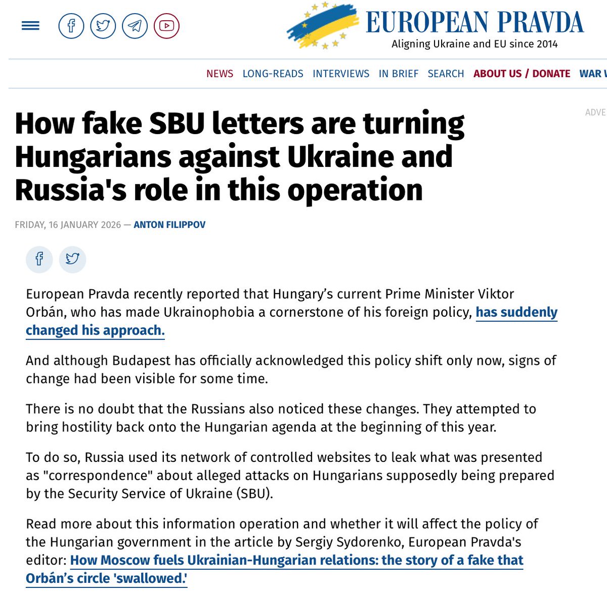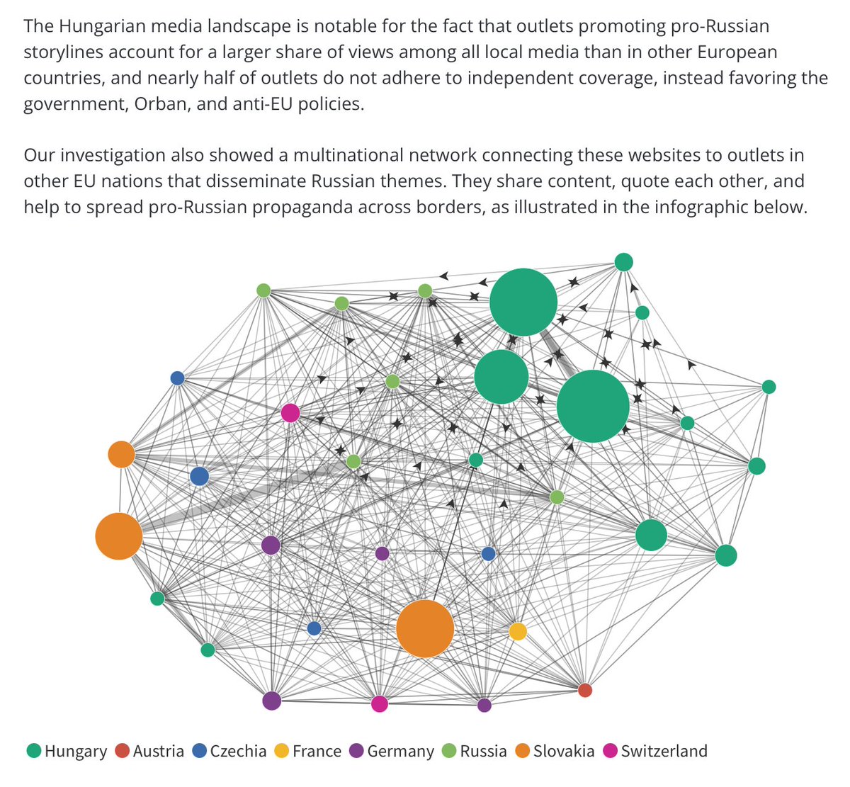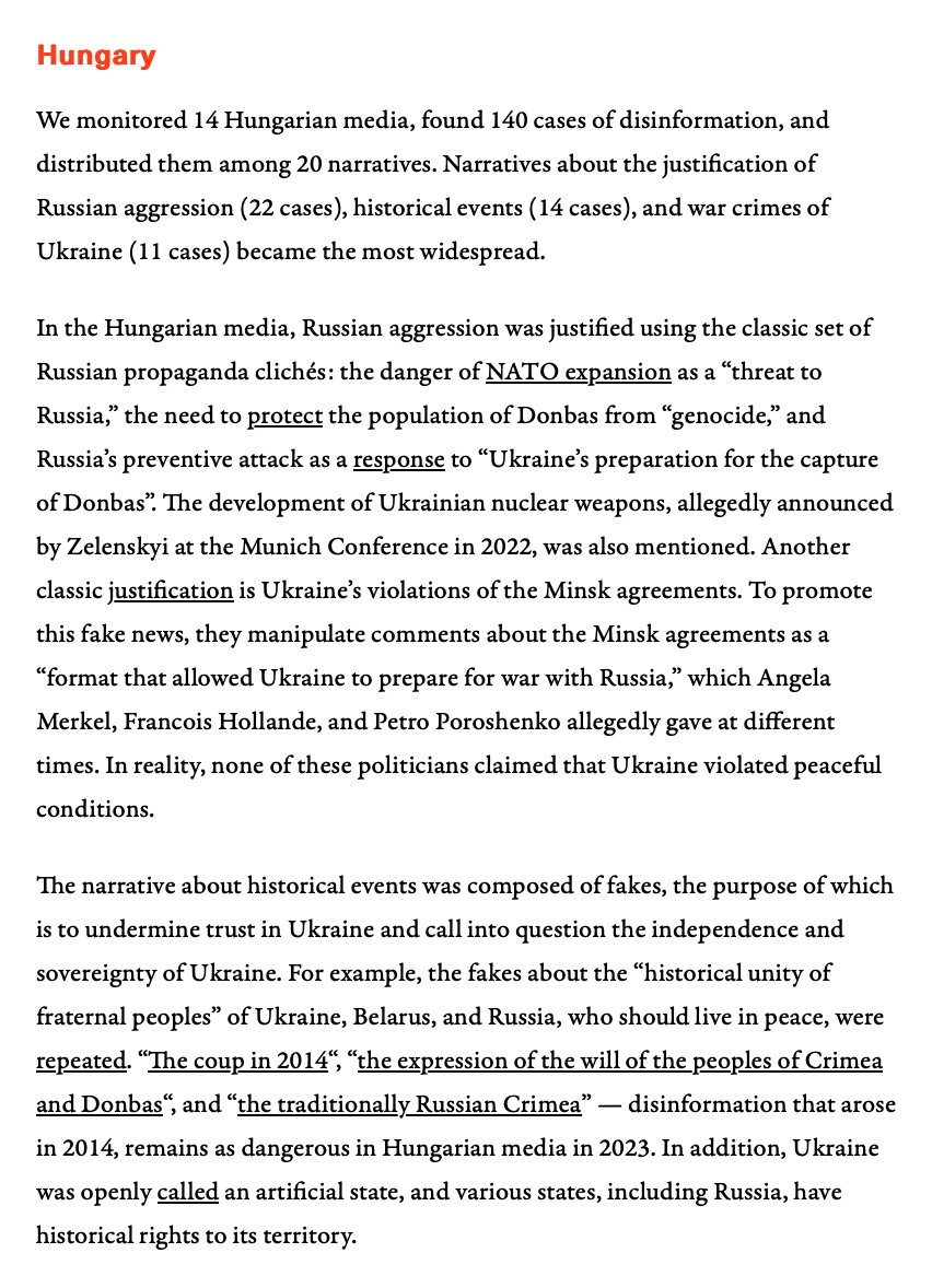 Hungarian media controlled by Orbán, in turn, spread Russian propaganda content, covering Putin’s policies positively and criticizing the West, NATO, and Ukraine. Russian media content, articles, and reports are regularly republished and broadcast through state and pro-Orbán media.