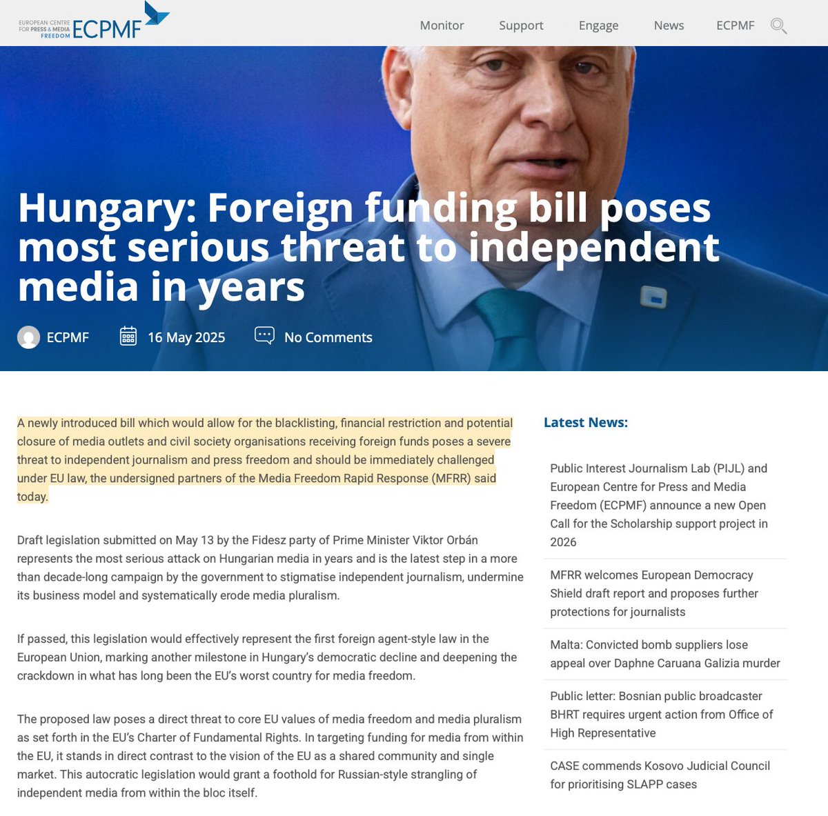 Hungary is among the EU countries with the strongest pressure on media freedom. In 2018, 476 pro government media outlets were consolidated into KESMA, placed under the control of Orbán allies and exempted from oversight by decree. This created a powerful instrument to weaken independent media.
