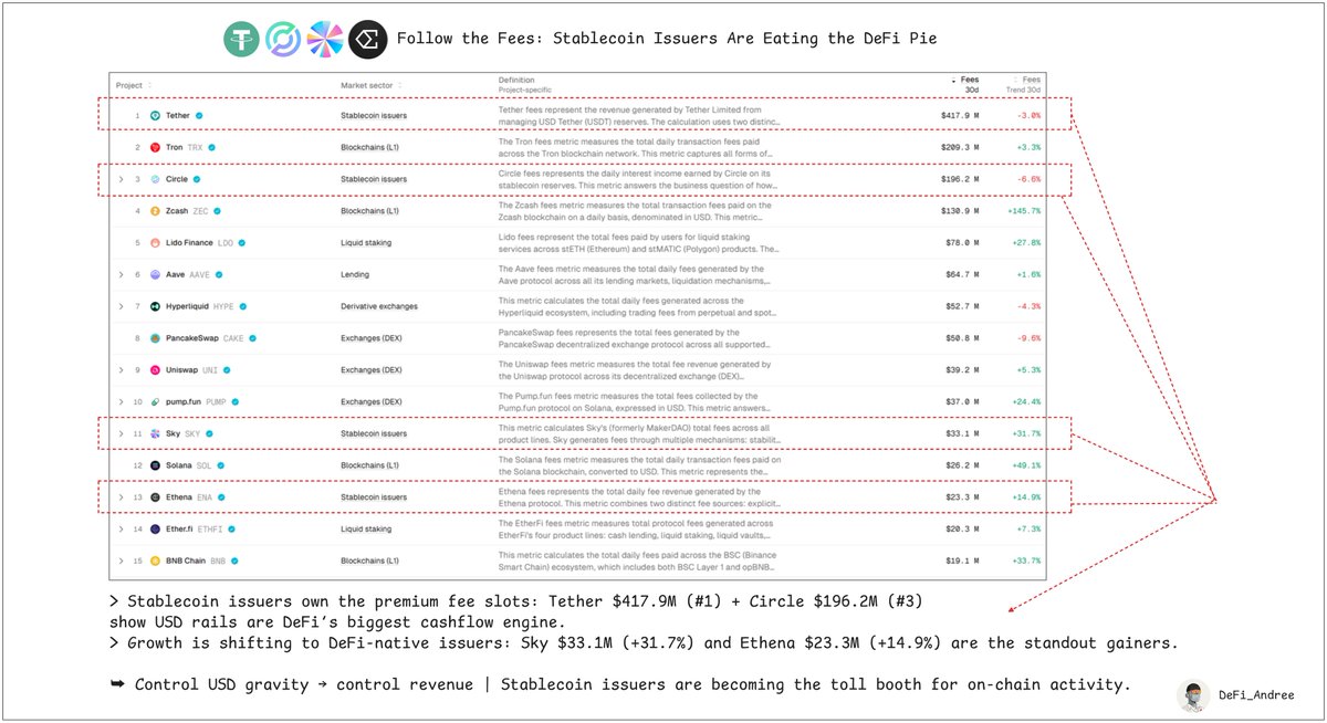 #1 @tether: $417.9M / 30D → still the “king of cashflow”.