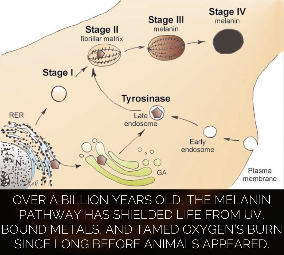 15. Chelation of Matrix Metal Ions (Fe, Mn, Cu) = oxalate problem = why their mitochondria are demolished = no melanin controller. People forget that melanin main evolutionary roles was to control the dirty chemistry that existed in the GOE. Melanin is a metal chelator for these dirty metals that destroy mitochondrial function.