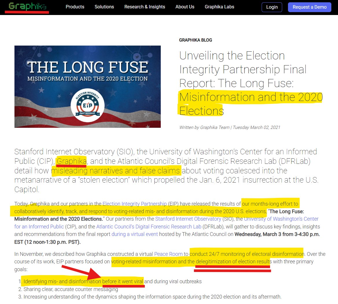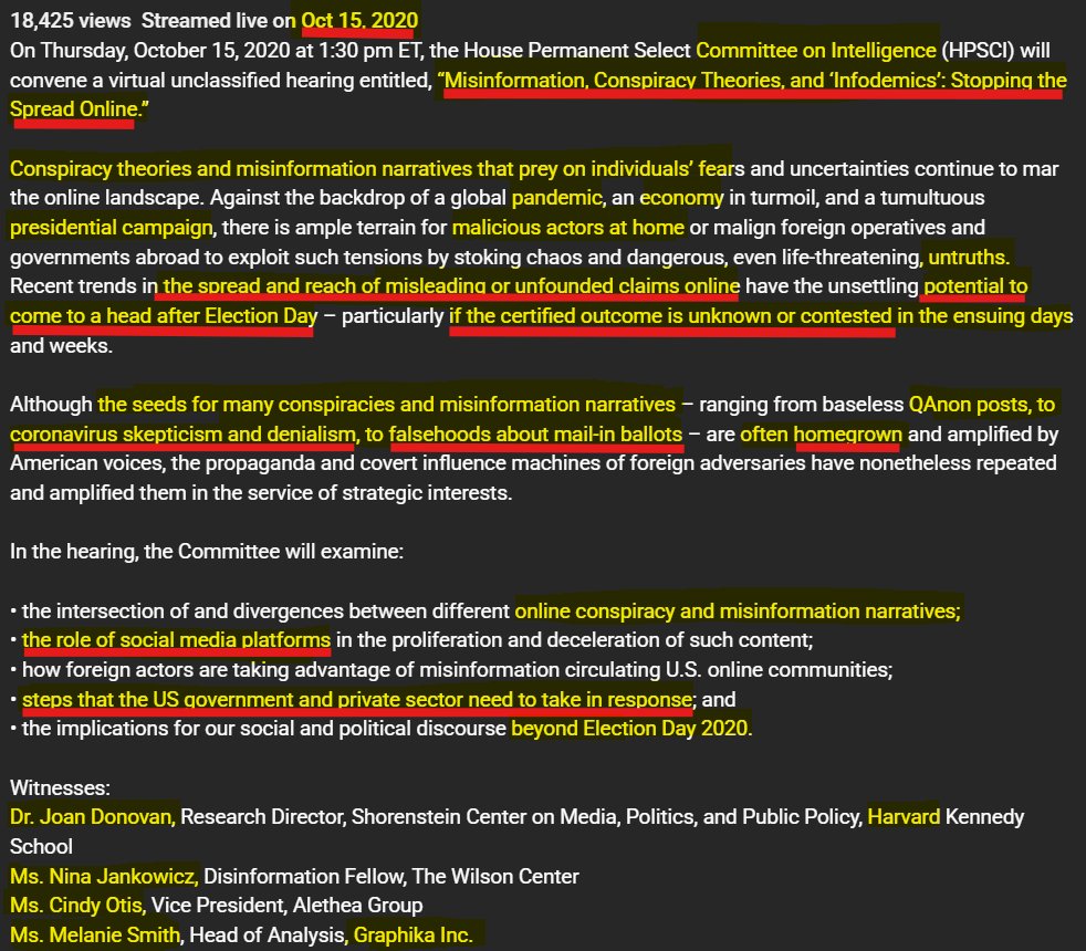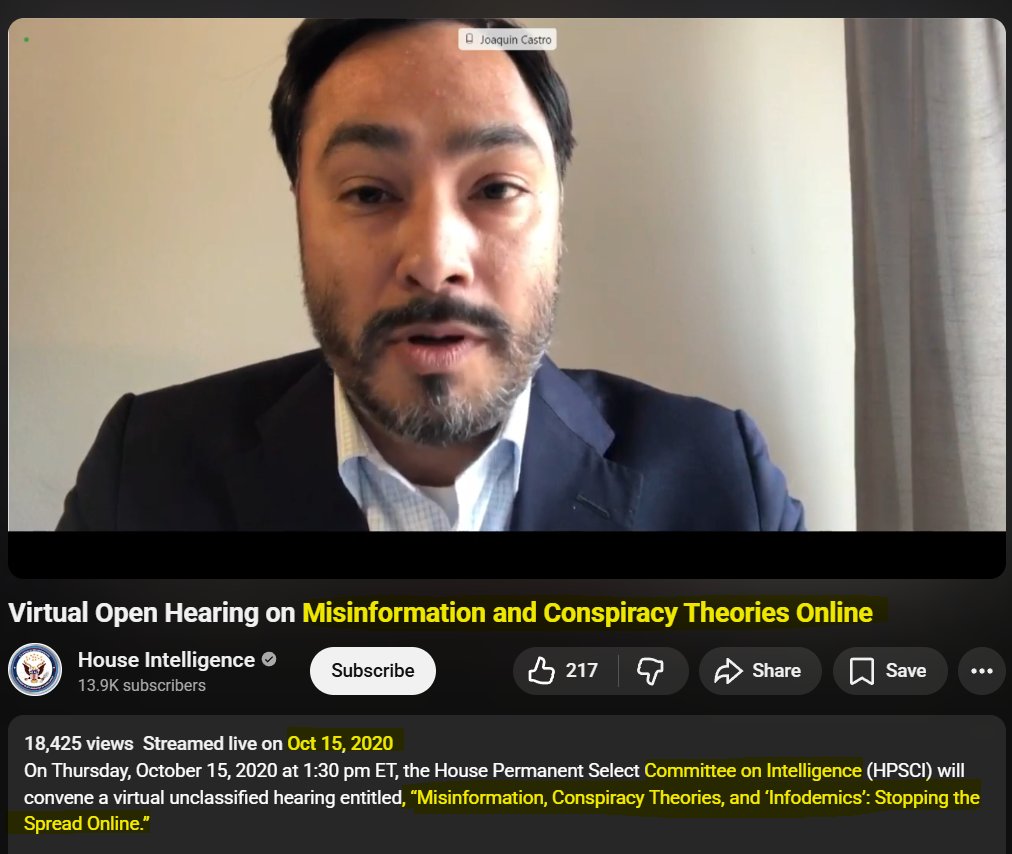 7) And wouldn't you know it, one of Castro's expert witnesses for his "Misinformation, Conspiracy Theories & Infodemics: Stopping the Spread Online” Oct 2020 hearing was from Graphika, who at that very moment was anchoring DHS/EIP's election censorship op