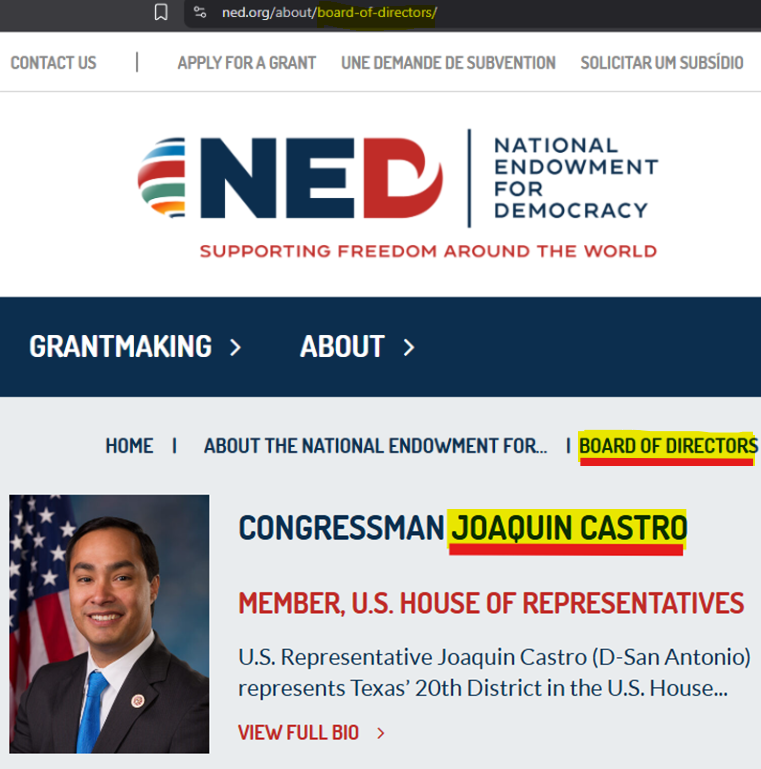 23) So I hope that explains how someone like Castro is on NED’s board. NED recruited him after 6 years of his censorship advocacy, then he sponsored bills in Congress as a NED director to pump more money into NED’s global censorship projects. A case study of how the scam works.