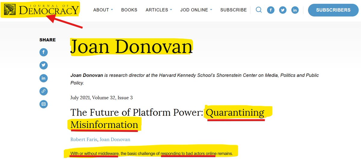 10) You'll notice in the above NED article authored by Castro's expert witness Joan Donovan in 2021, she pushed what they called the "middleware" solution to force social media censorship while getting around the First Amendment's constraint on government
