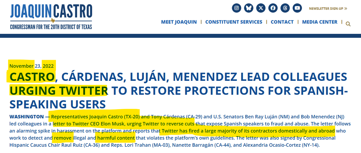Since NED is the epicenter of the Censorship Industrial Complex, & after Trump's 2016 win NED began hiring officers & directors for their specialty in censorship work, here's a 🧵 on the Censorship Industrial Complex activities of Rep. Joaquin Castro, on NED's board since 2023:
