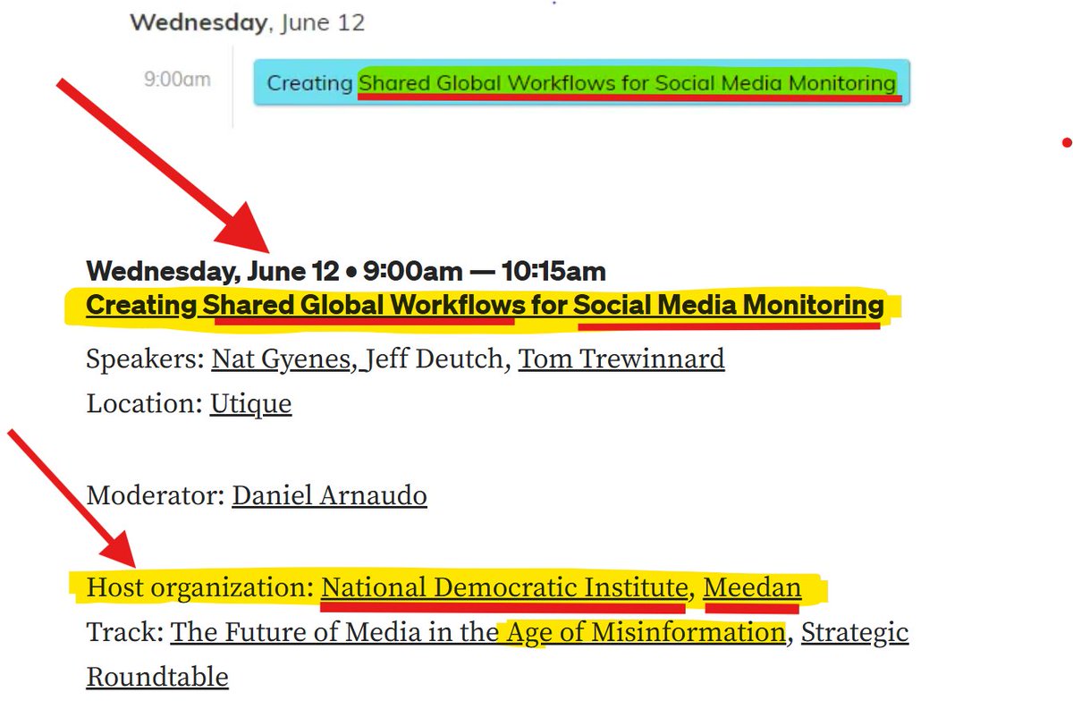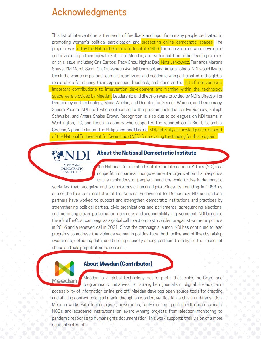 14) For more on how Castro’s Spanish-language censorship quest complemented the Censorship Industrial Complex’s Spanish-language censorship plan (implemented thru NED), take Meedan and NDI. Meedan develops Spanish-language censorship tech. NDI, NED's DNC branch, then deploys it.