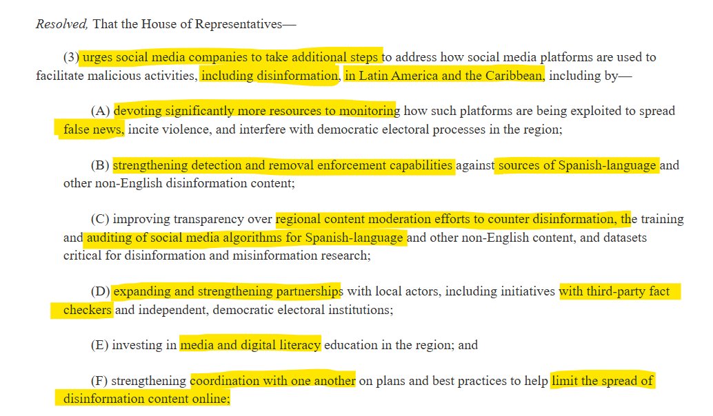 22) So once again, Castro's bill for Congress to up censorship funds & push gov't agencies to increase censorship ops was a NED Sandwich. Castro (NED board) pushes, DFR Lab (NED President-run) implements, flaggers like Comprova (NED-funded) get the money.
