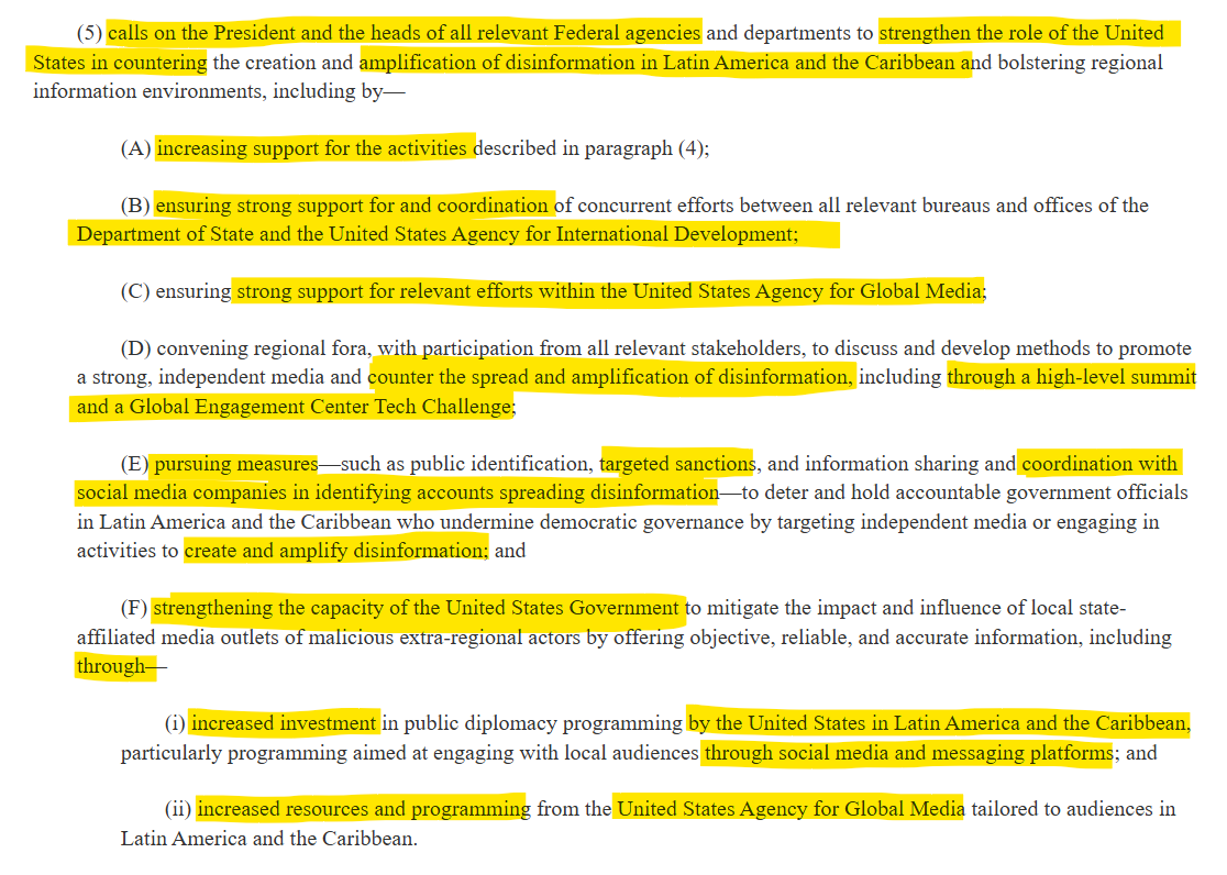 18) As NED was leading the coordinated attack on social media companies in these LatAm countries to force them to censor any speech supportive of a gov't or movement there Biden's CIA opposed, in stepped NED board member Castro from Congress to push more censorship funding there