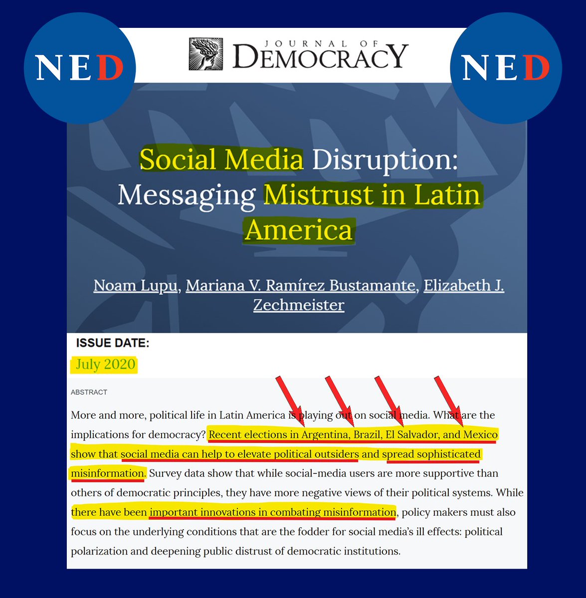 17) NED's journal stressed the need for a more robust Spanish-language Censorship Industrial Complex, since from 2016-2020 most censors only spoke English & lacked the funds and ability to censor Spanish too. Spanish posts needed to be censored to rig elections in South America.