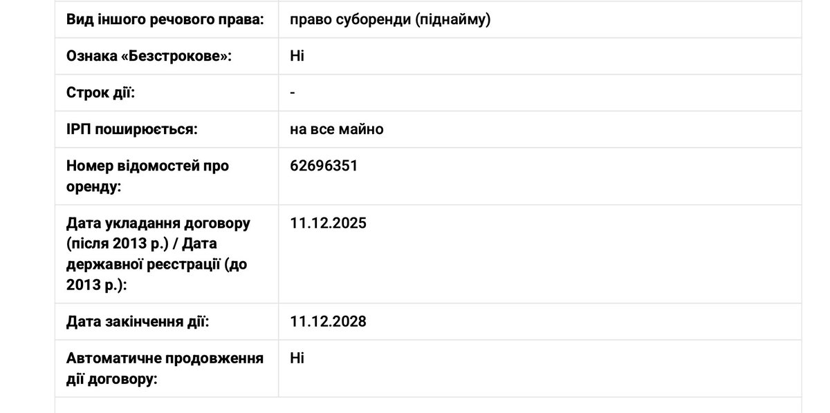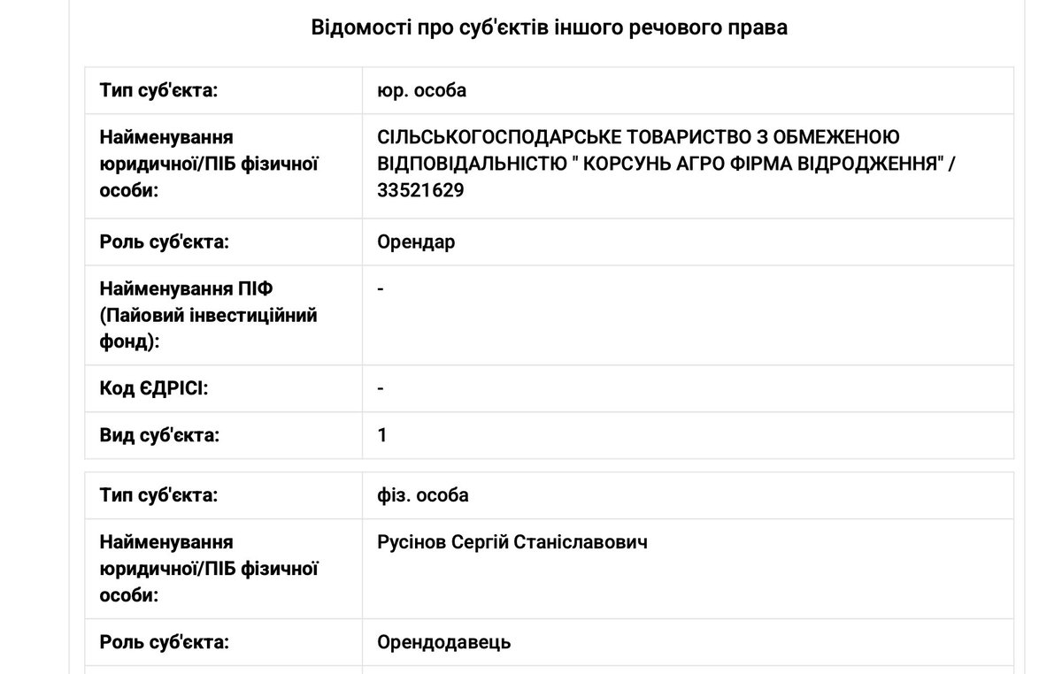 11 грудня 2025 він укладає договір суборенди на три роки зі СТОВ «Корсунь агро фірма відродження» (33521629)