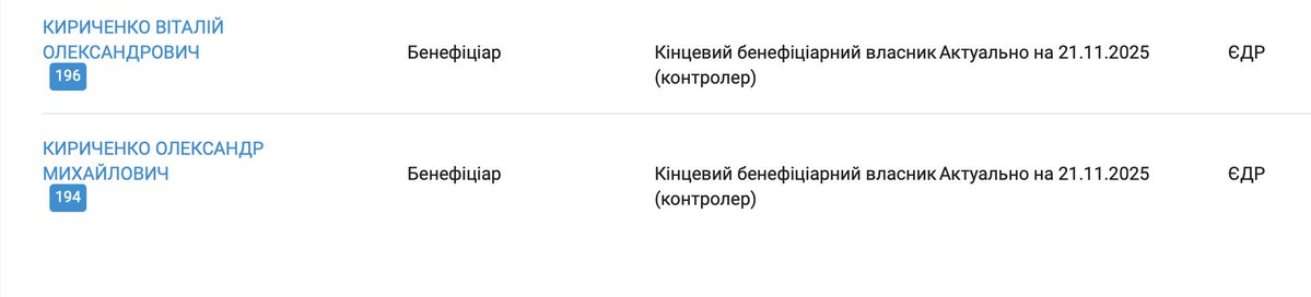 Кінцеві бенефеціарні власники: