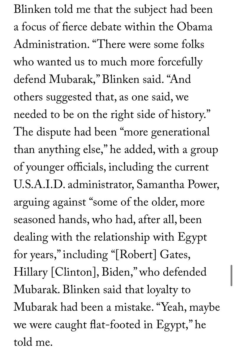 Some wondered whether Biden was too establishment a figure to boldly course correct. Antony Blinken, in an interview before he became secretary, spoke to Biden’s loyalty to the status quo—as in his role as one of Egypt strongman Hosni Mubarak’s last defenders in the Obama era: