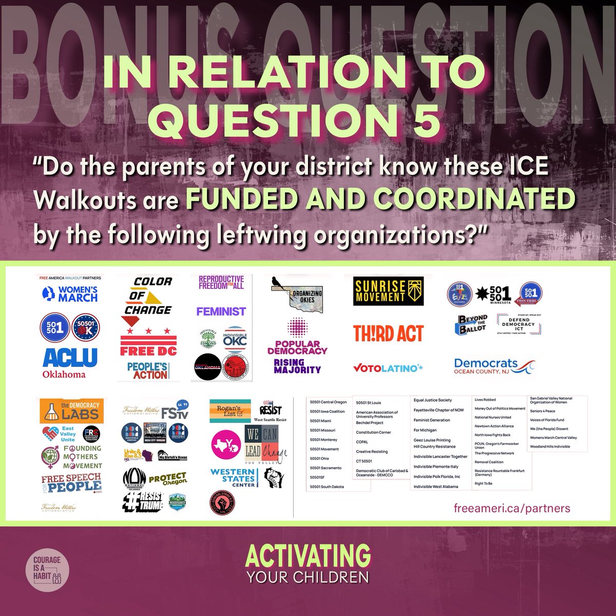 Let's take a look to see if that's true. Here are the partners funding the FREE AMERICA WALKOUT PROTESTS like the one in @myccs