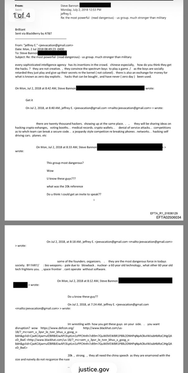 Epstein talking about us hackers (@defcon) to Steve Bannon in 2018: