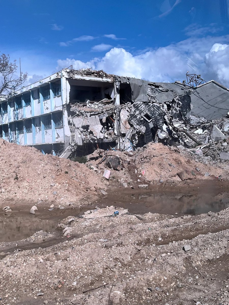 📸 Photo 9: A partially destroyed school surrounded by rubble in Beit Hanoun. February 1, 2024.