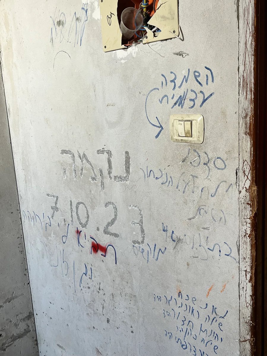 📸 Photo 13: A wall in a Palestinian home in Beit Hanoun that soldiers from the Golani brigade had used as a base. On the wall, written in Hebrew, is the word “Revenge” with the date October 7, 2023 below it. February 1, 2024.