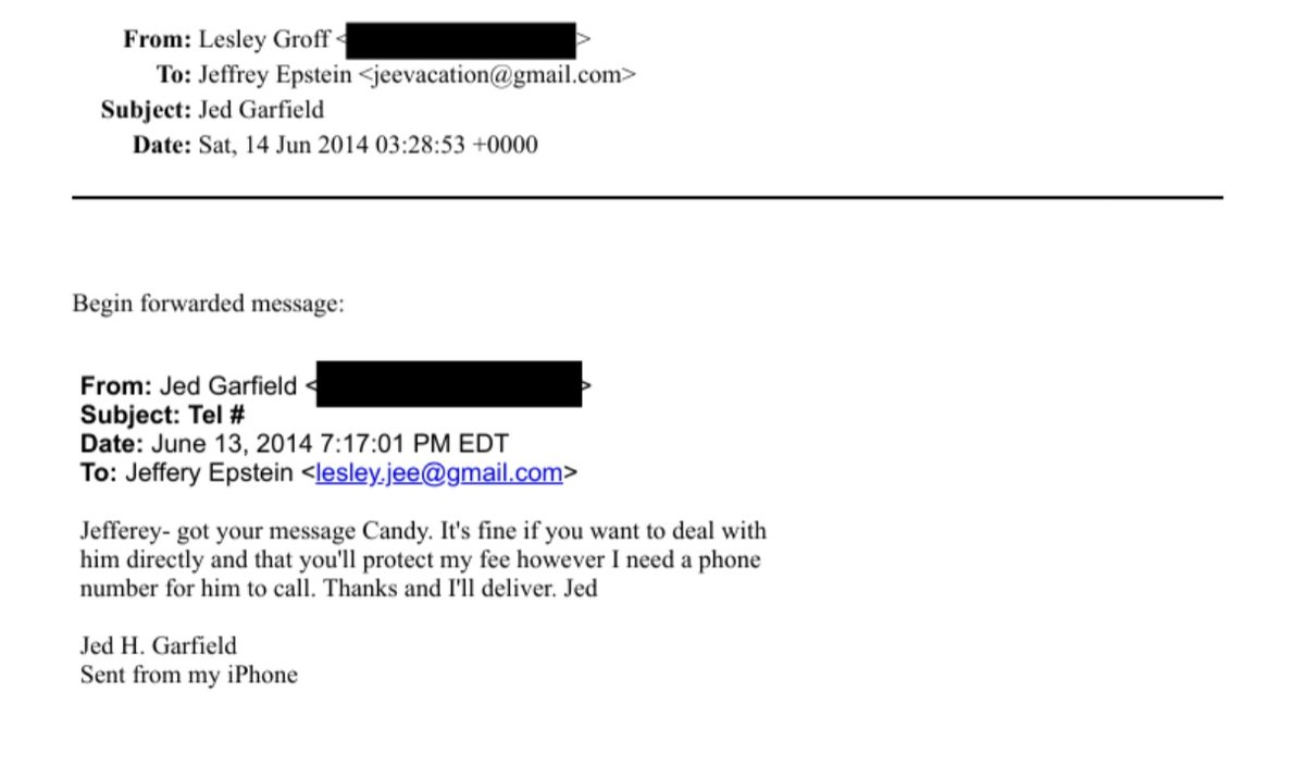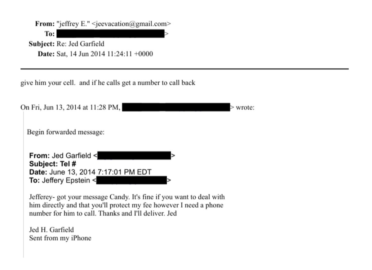 And here is Jed Garfield giving Nick Candy Epstein's number: Image