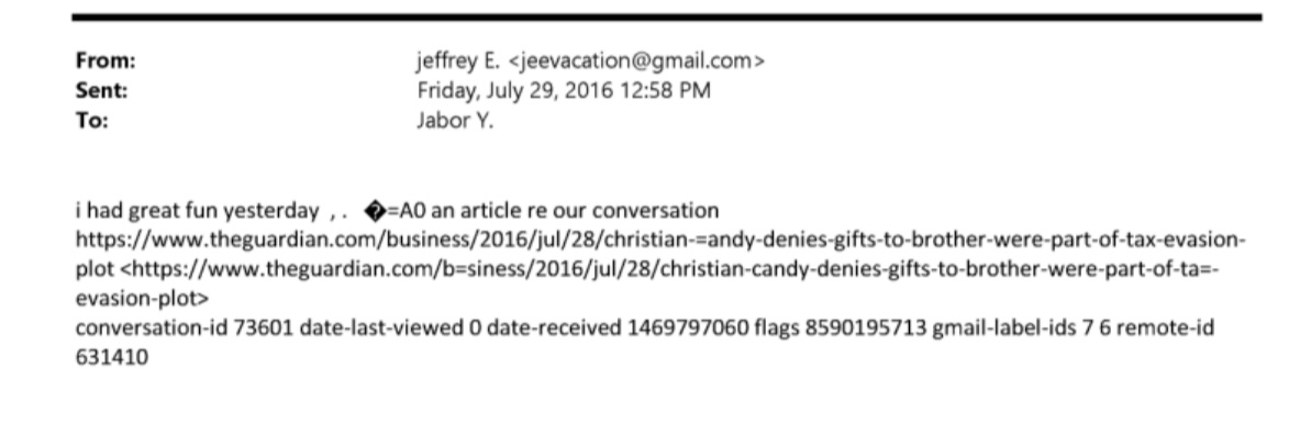Epstein and Candy swapping numbera through Jed Image