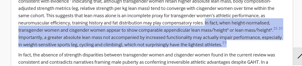 “Other studies have compared the performances of transgender women athletes with sedentary cisgender women, also argued as an inappropriate comparison.”
