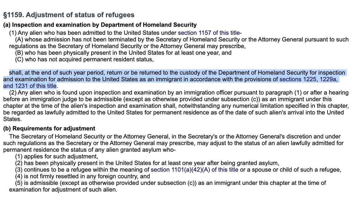 Refugees allege DHS dragged feet & imposed onerous conditions on those released, retaining their IDs & work permits. DHS has moved to dissolve the TRO, alleging “detain-and-inspect” policy is lawful & mandated by statute below, even if never before interpreted that way. /3 Image