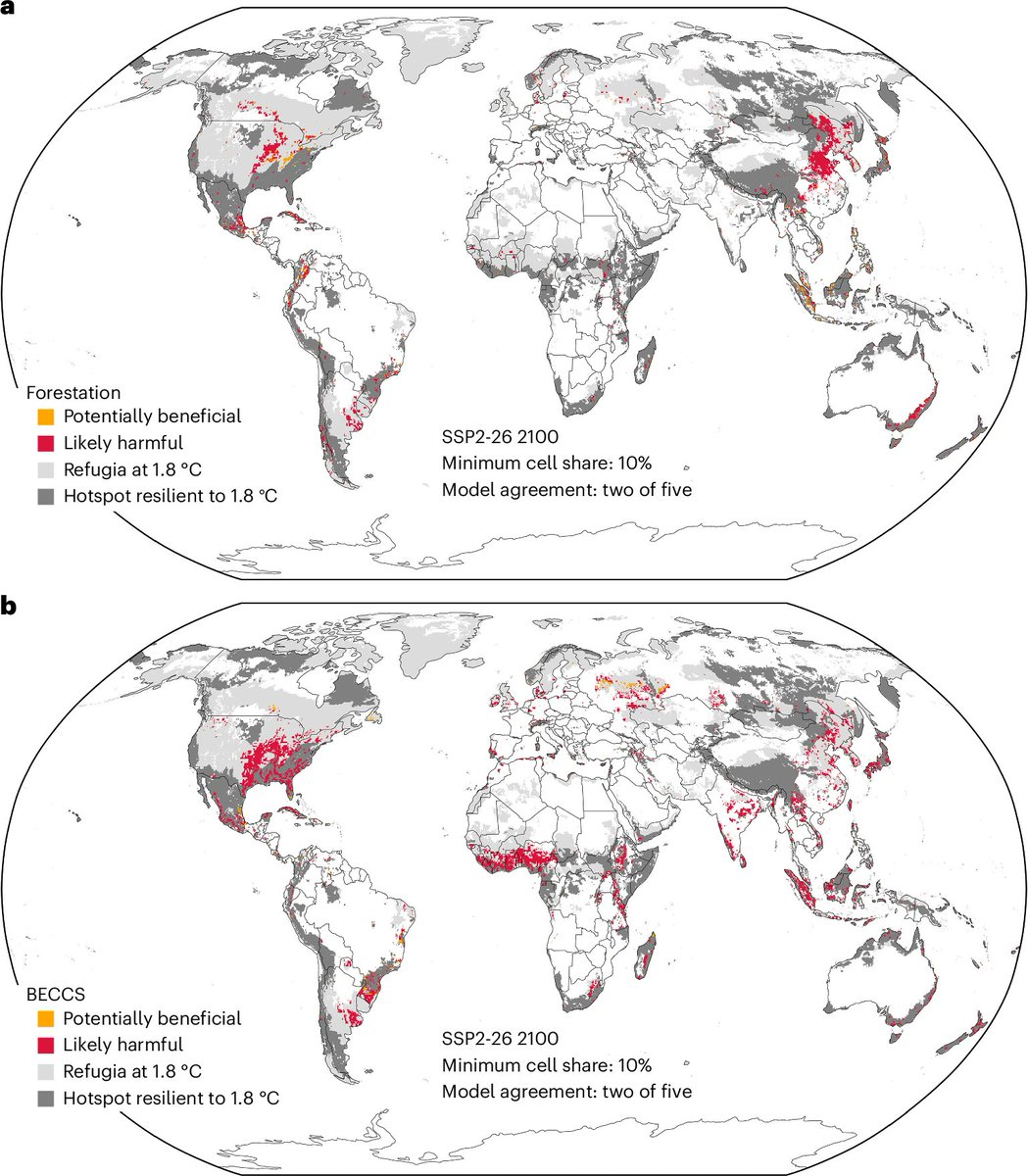 2/ Using five integrated assessment models, the study examines where large-scale CDR is projected to occur & and how often it overlaps with biodiversity hotspots and climate refugia, the places most critical for species survival.