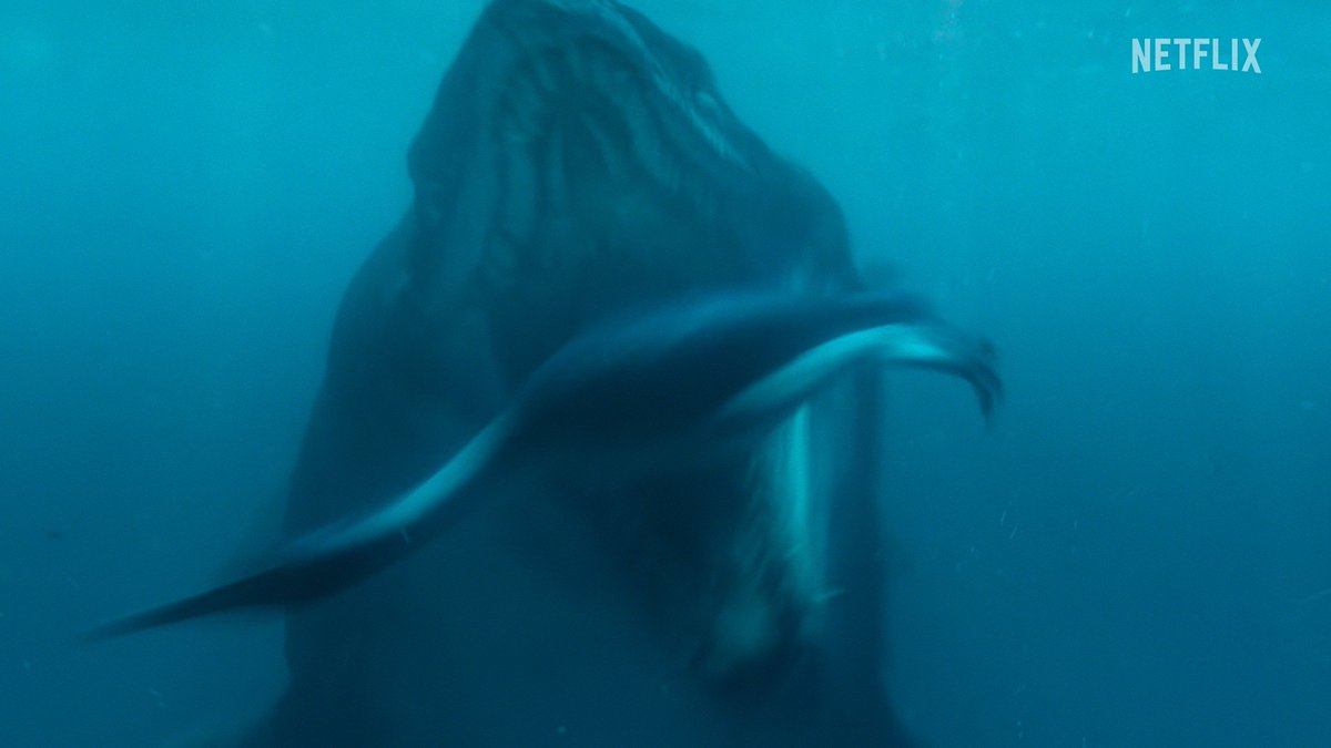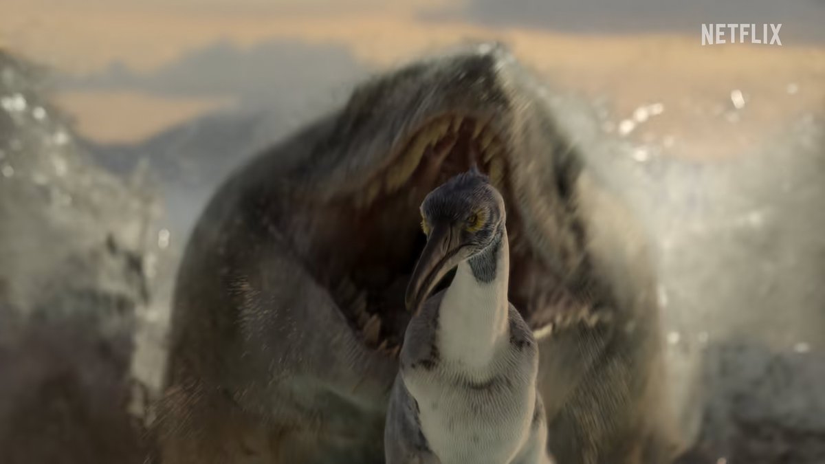 One of the most striking and compositionally impressive sequences from the entire trailer. A Hesperornis being chased relentlessly by a mosasaur! (29/?) Image