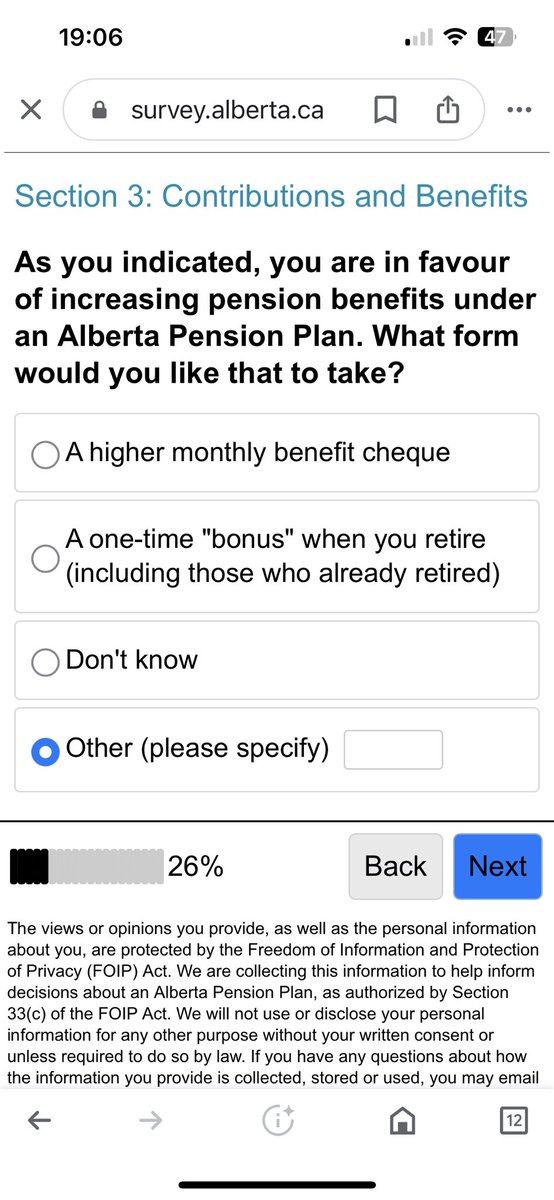 (They have a website devoted to the rather controversial Alberta pension plan proposal with this survey).