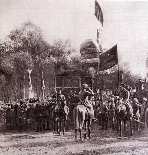 El primer sóviet se formó en Taskent en 1917 por obra de los obreros ferroviarios –mayoritariamente rusos y armenios–. Aunque aislados del resto del poder soviético por las fuerzas del general Dútov, el soviet de Taskent inició una serie de campañas militares en la zona,