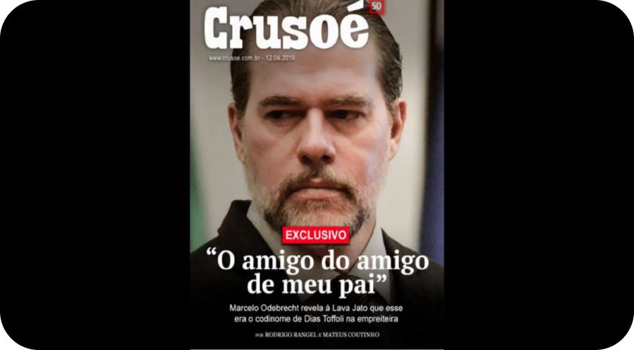 A revista Crusoé publicou dias antes uma reportagem revelando que Toffoli seria o "amigo do amigo do meu pai", codinome citado por Marcelo Odebrecht na Lava Jato.