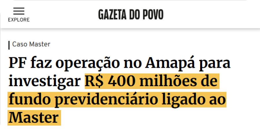 R$ 400 MILHÕES da previdência dos servidores do estado, direto para o BANCO MASTER.