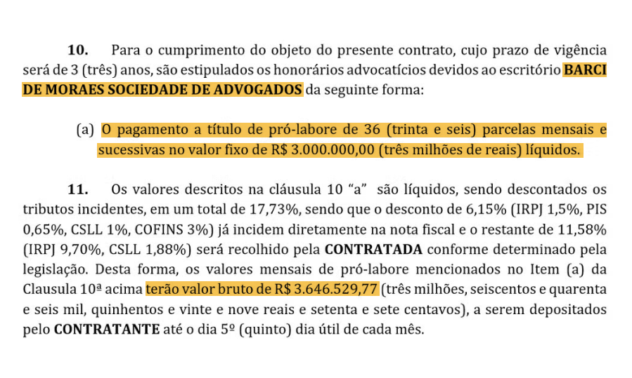 Os documentos revelaram que o contrato previa a defesa do banco em três áreas estratégicas: