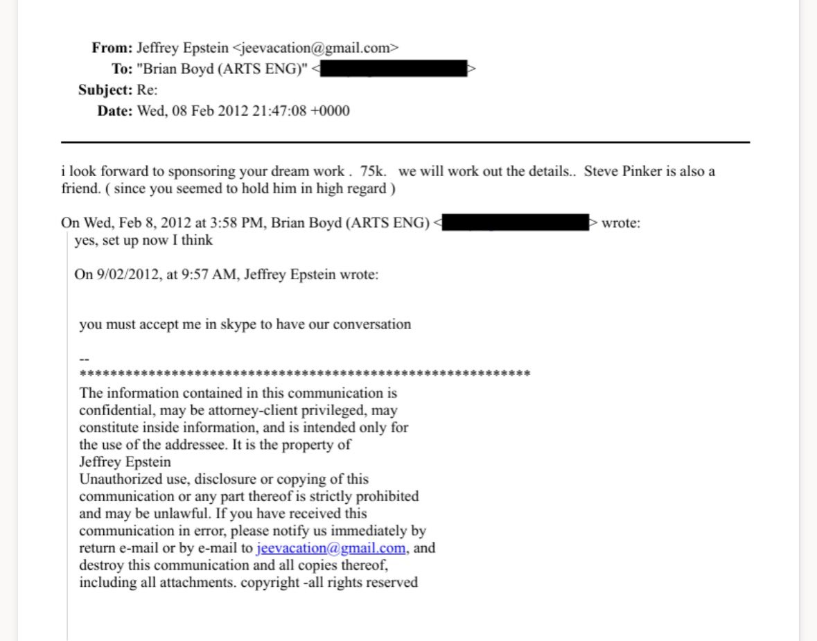 🚨 Steven Pinker was not just mentioned in the files 416 times. He joined Epstein’s defense team, then advised him on transporting minors for s*x 🚨