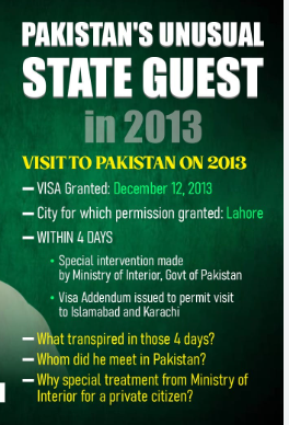 It was his scheduled meeting with Hafiz Saeed and leaders of Jihadi Council in Pakistan where he "advised" them to have peace with India.