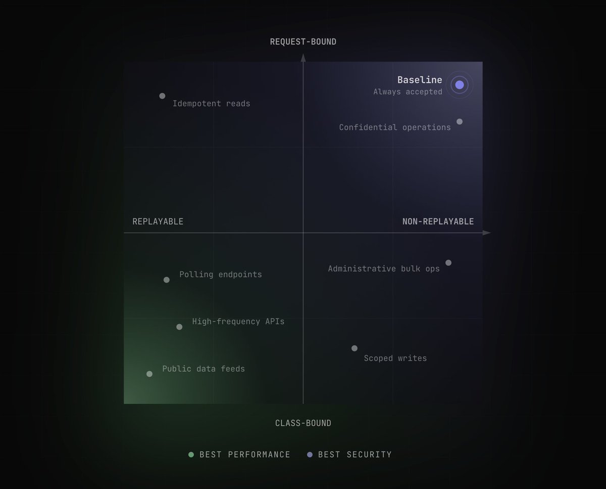 Servers must accept the strongest guarantees — non-replayable + request-bound — so clients are never forced to weaken their security unless they choose to.Image