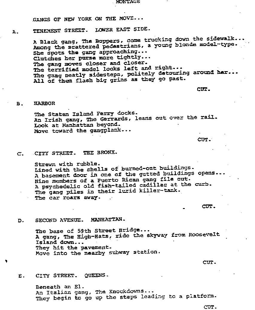 The Wanderers was another gang movie in production at the same time, and Paramount wanted The Warriors to release first. As such, 4 editors were hired to work on the film at the same time: Freeman A. Davies Jr, Dabid Holden, Susan E. Morse, and Billy Weber.
