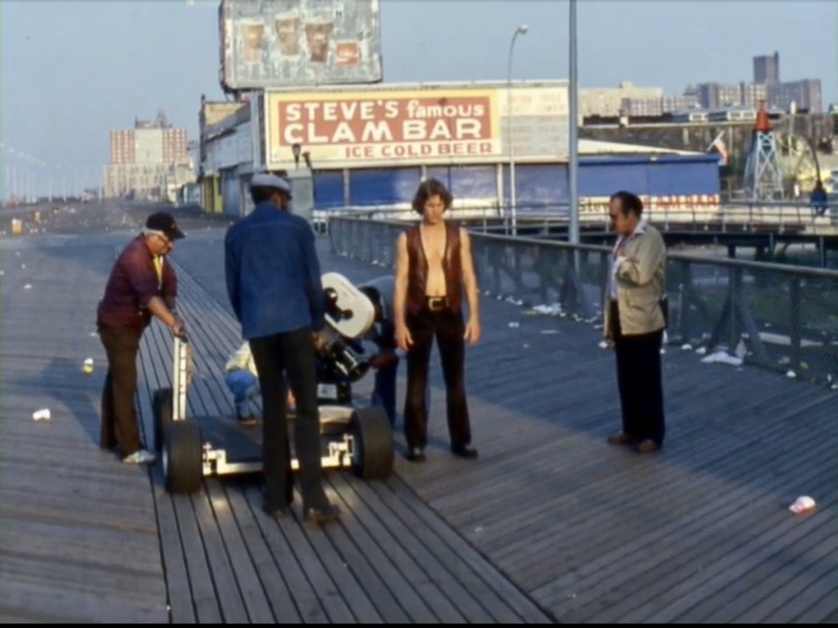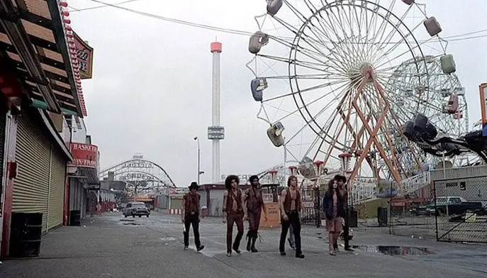 Actual Coney Island landmarks were used for filming, including the Wonder Wheel and boardwalk. The final shot of the Warriors walking down the beach at dawn capped off the location shooting, and was the final shot of production.