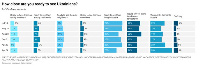 While the Russian opposition constantly claims there is a silent majority that feels compassion and sympathy for Ukrainians, these surveys spanning across the past 6 years paint an image much more in line with the war crimes regular Russians are committing daily in Ukraine.