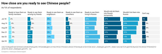 Being a rather good Russian ally and more or less keeping the Russian economy alive didn't seem to have made that much of a difference on how most Russians feel towards the Chinese people.