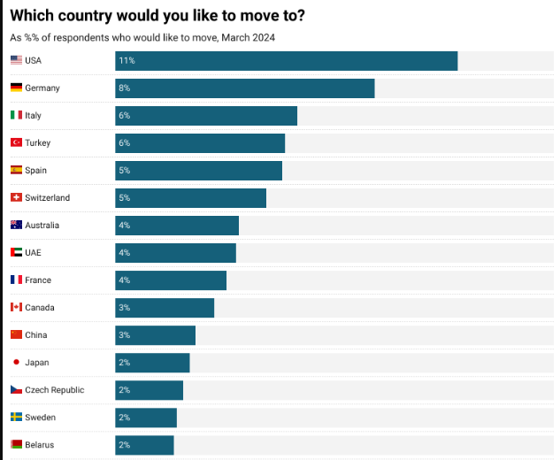 With most Russians inclined to believe to one degree or another the Kremlin narrative of a woke, decadent and collapsing Western world, the majority of them would still very much prefer to live in it, all while simultaneously advocating for invading or destroying it.