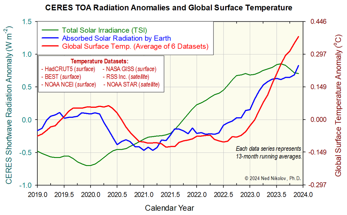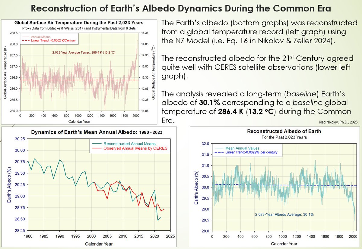 The proof is in the fact that our model relating global temperature to albedo variations published last year (see Eq. 16 in: mdpi.com/2673-7418/4/3/…) accurately reproduced the decline of Earth's albedo measured by the NASA CERES Project since 2000: