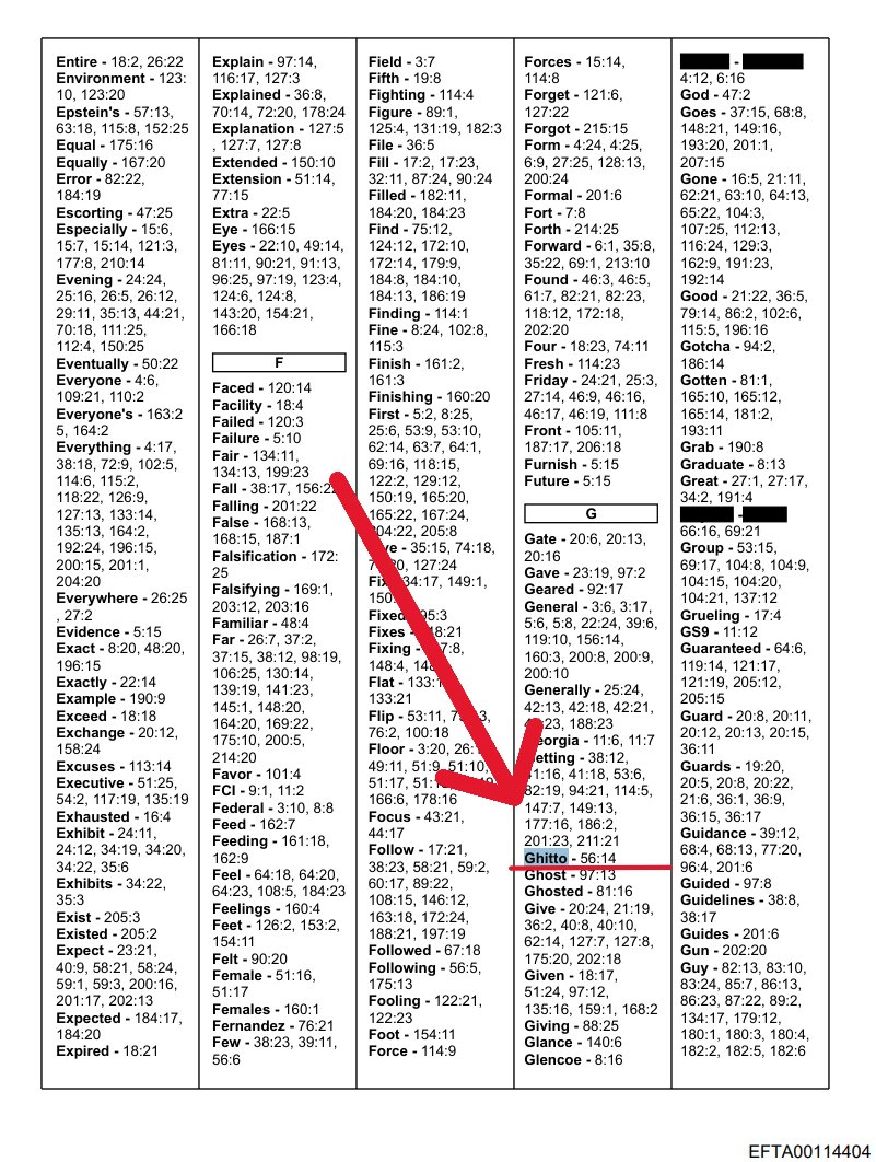 Deposition/interview transcripts are supposed to be a word index at the end. In most of the transcripts I have seen, it is missing. This is key, because look at this transcript of an unknown supervisory corrections officer. See how it says "Ghitto" at 56:14? Oops.