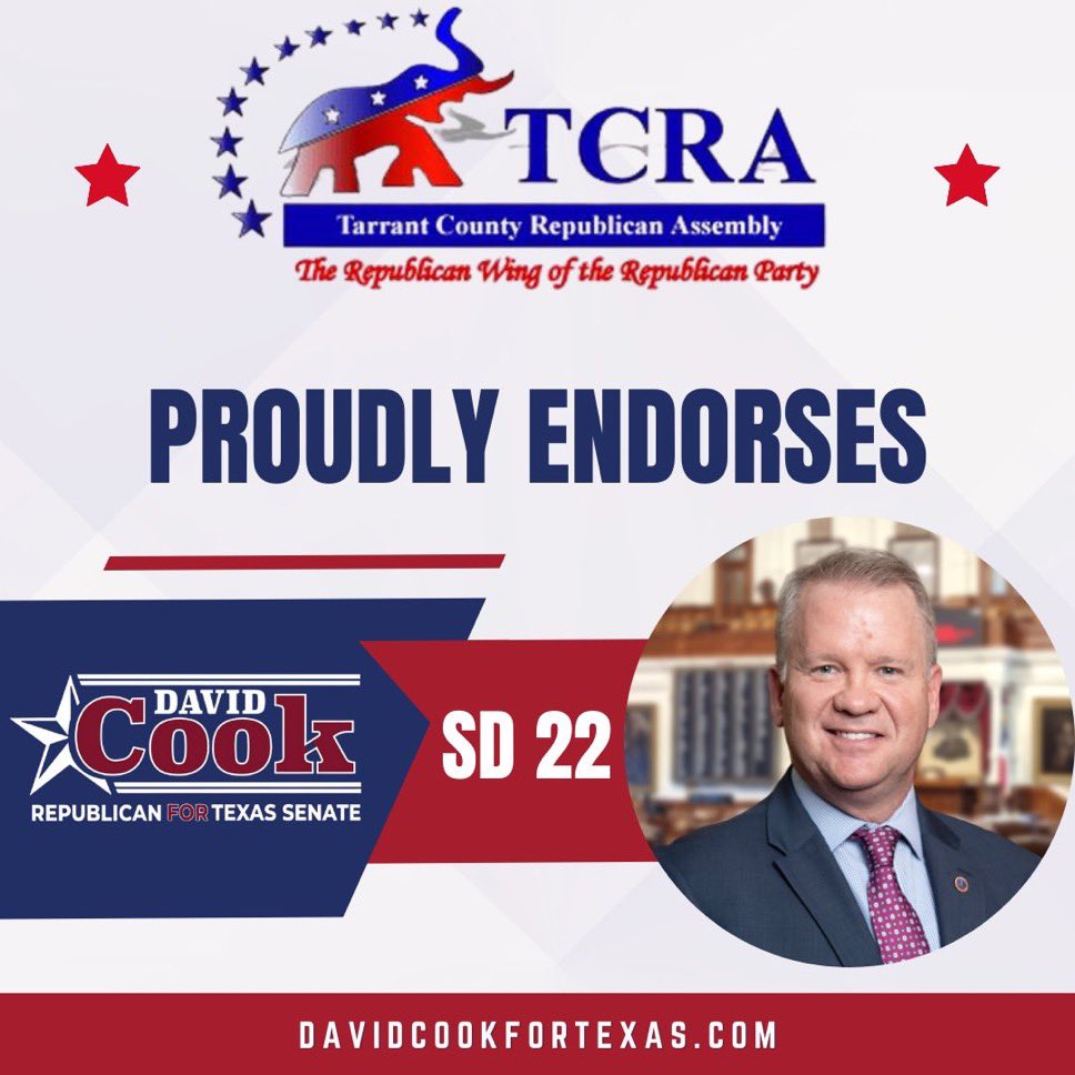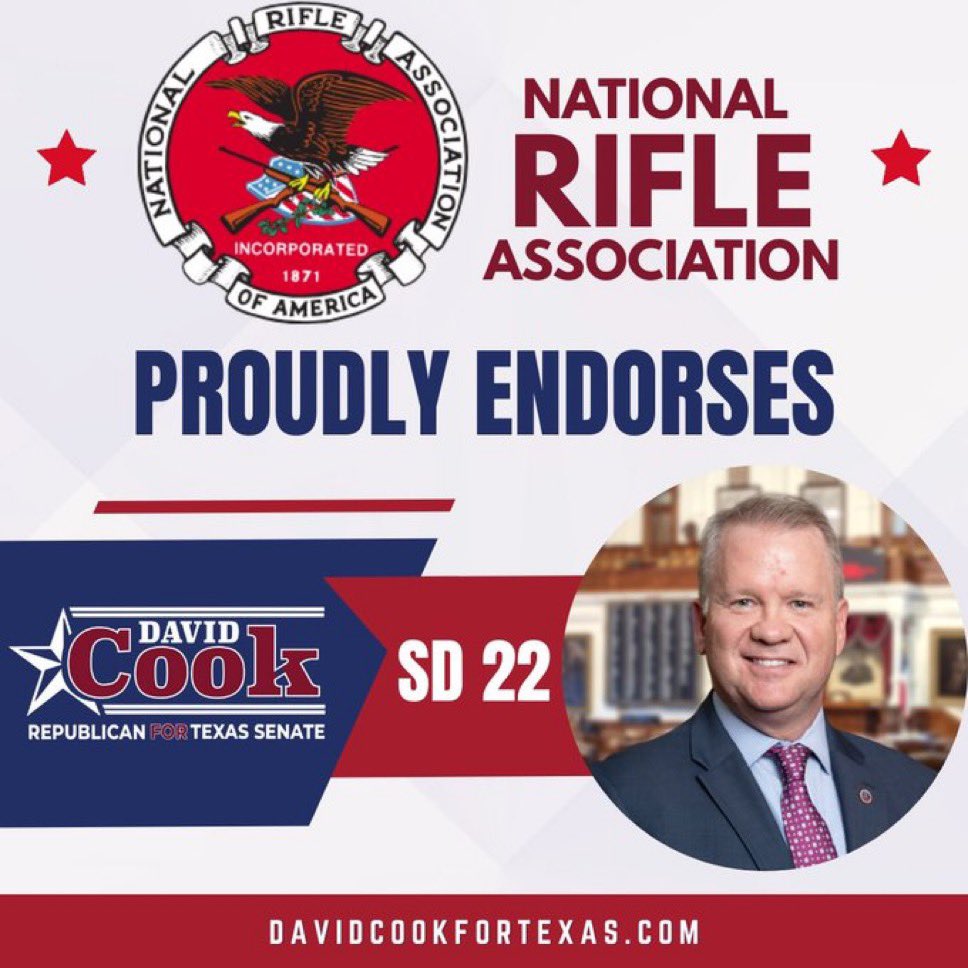 Senate Candidate David Cook has not only been endorsed by President Trump, but also by numerous other organizations, such as Texas Right to Life, National Rifle Association and the Tarrant County Republican Assembly.