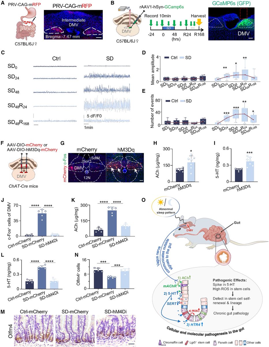 Sleep deprivation sends abnormal signals from the brain to the gut through the vagus nerve, which disrupts the function of intestinal stem cells that normally repair the gut lining.