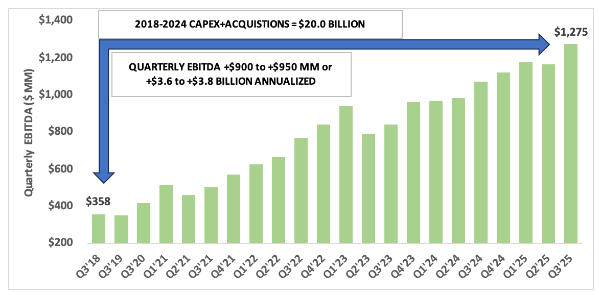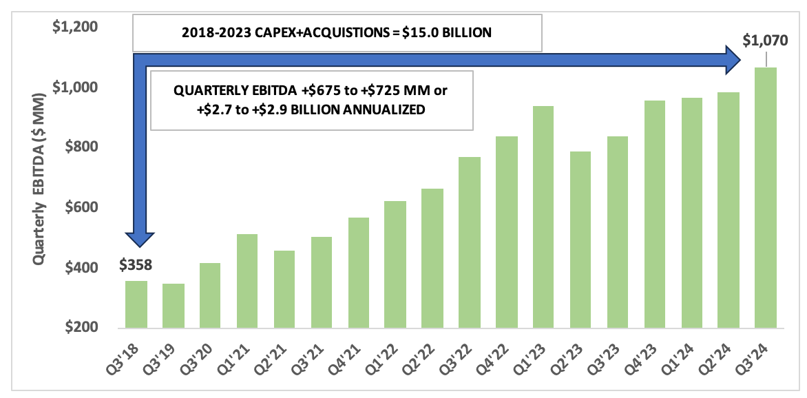 Let's finish the C-corps with $TRGP. Between 2018 & 2024: