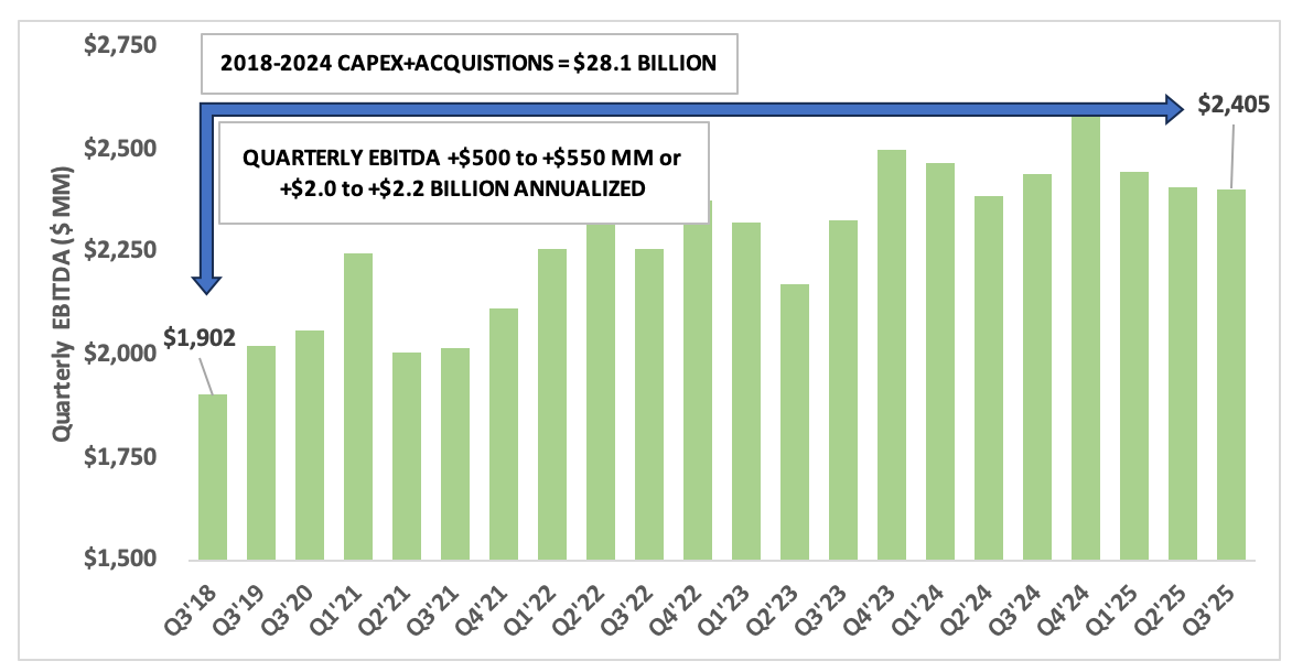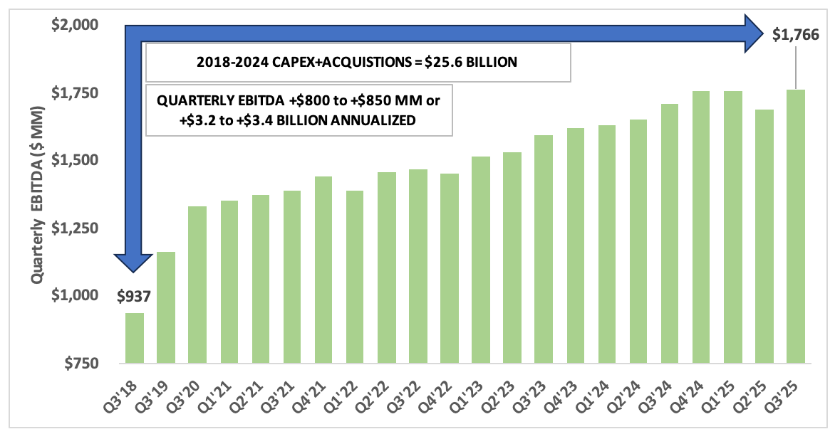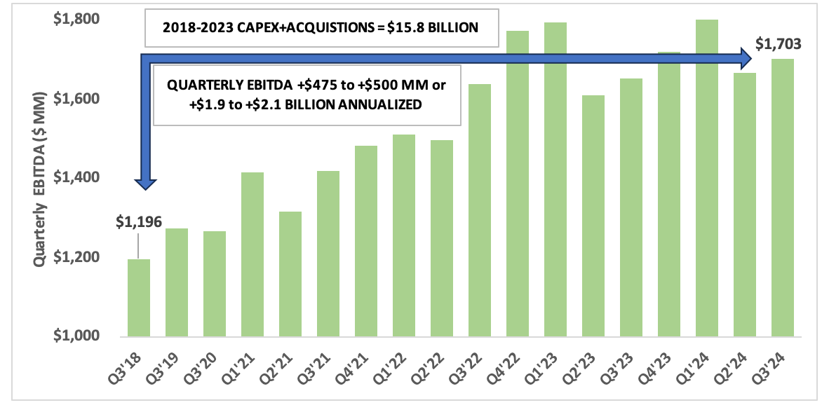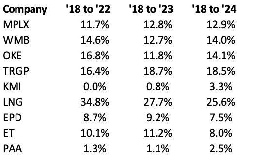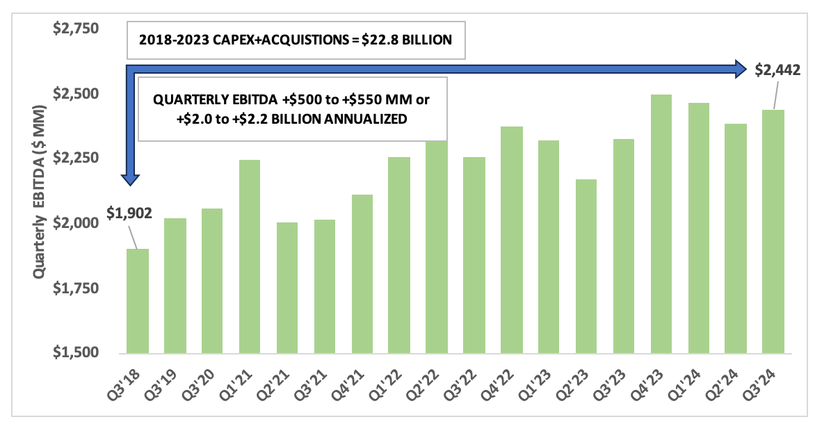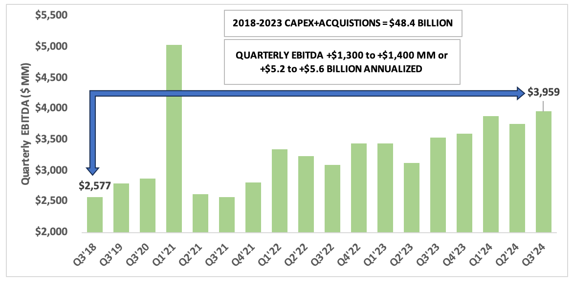 Turning to MLPs, first up $EPD. Between 2018 and 2024: