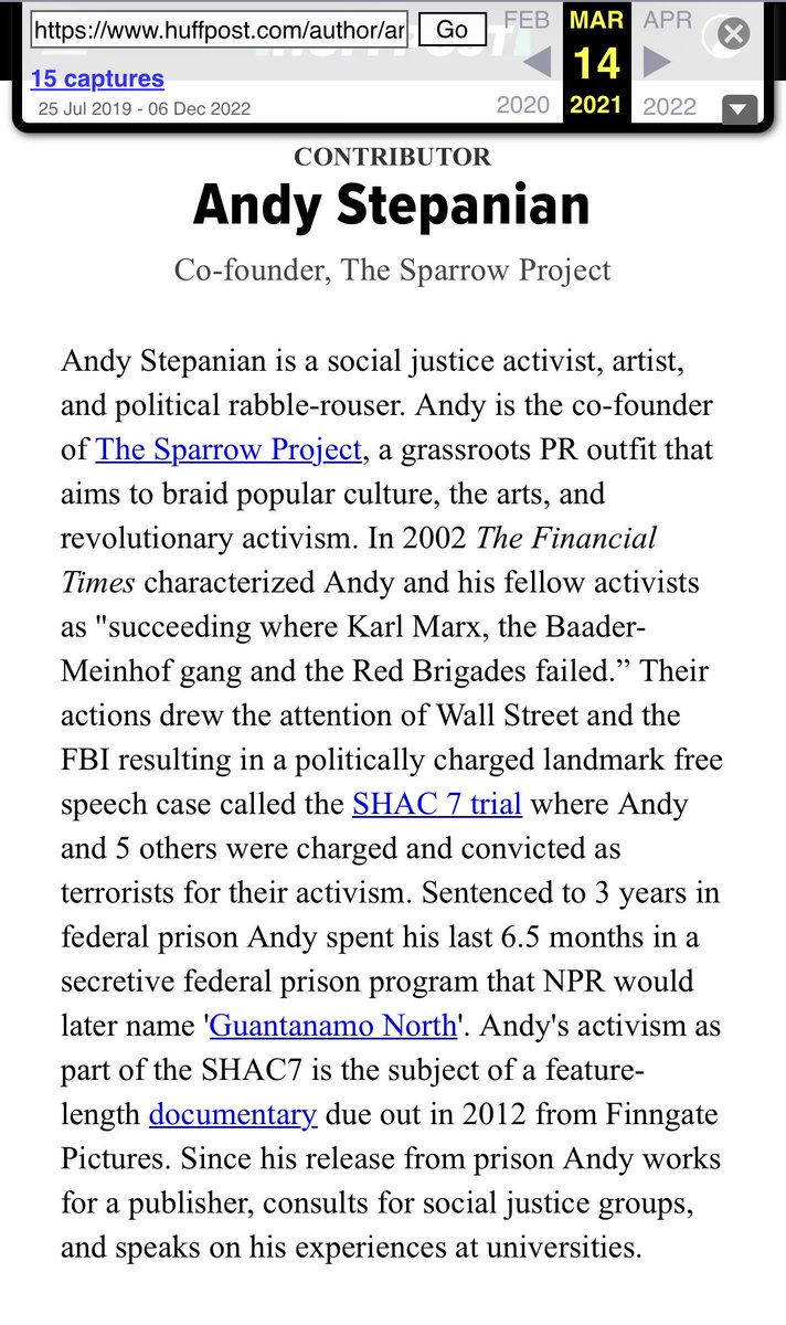 Andy Stepanian is a social justice activist, artist, and political rabble-rouser. Andy is the co-founder of The Sparrow Project, a grassroots PR outfit that aims to braid popular culture, the arts, and revolutionary activism. In 2002 The Financial Times characterized Andy and his fellow activists as "succeeding where Karl Marx, the Baader-Meinhof gang and the Red Brigades failed.” Their actions drew the attention of Wall Street and the FBI resulting in a politically charged landmark free speech case called the SHAC 7 trial where Andy and 5 others were charged and convicted as terrorists for their activism. Sentenced to 3 years in federal prison Andy spent his last 6.5 months in a secretive federal prison program that NPR would later name 'Guantanamo North'. Andy's activism as part of the SHAC7 is the subject of a feature-length documentary due out in 2012 from Finngate Pictures. Since his release from prison Andy works for a publisher, consults for social justice groups, and speaks on his experiences at universities.”