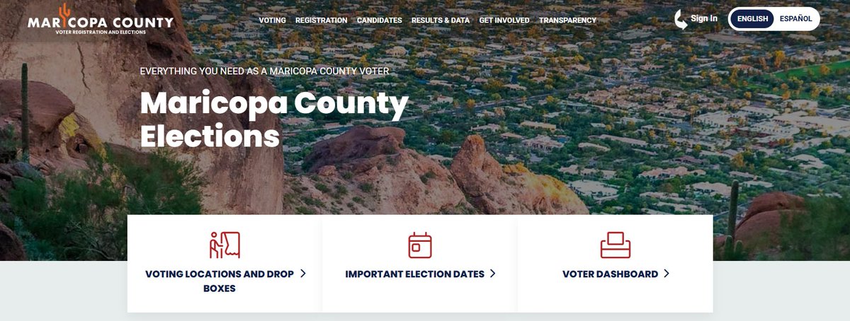 The new voter registration and election website (Elections.Maricopa.Gov) is modern, way easier to use, fully integrates the voter dashboard, and has way more features (e.g. visual representation of all the voting locations, real time update of voter registration statistics, do-it-yourself tours of the election facility, downloadable election maps, voter assistance requests, English-to-Spanish toggle).