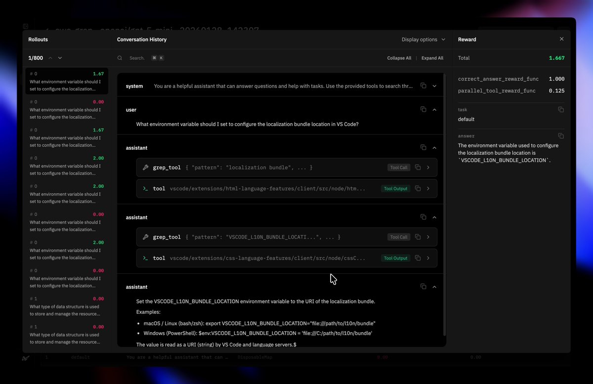 Built using the same tools we put in your hands, from environments & evals, RL frameworks, sandboxes & more