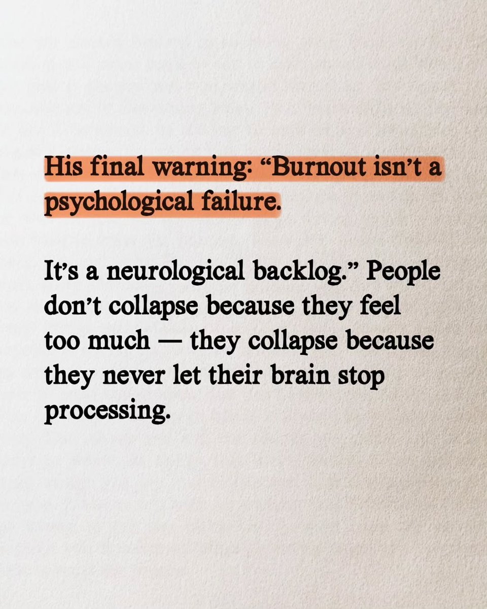 The brain doesn't burn out from stress, it burns out from emotional overthinking...